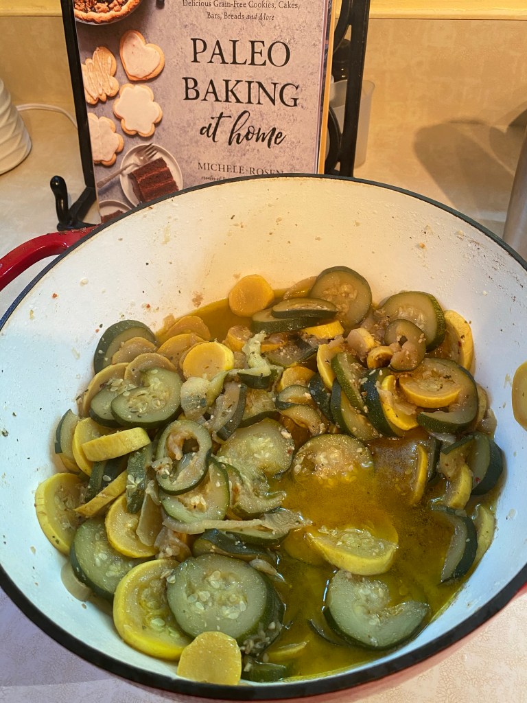 4. Add chicken broth, salt and pepper (remember to omit pepper if you need to be AIP compliant) and simmer on low heat, stirring occasionally until squash cooks down a bit.
