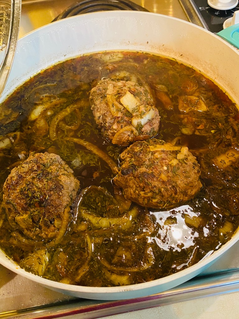 7. Add burgers back in and stir to allow burgers to be topped with gravy.