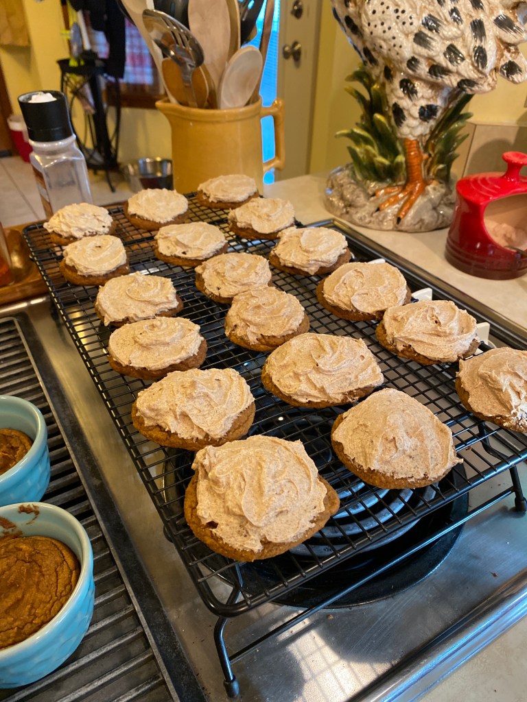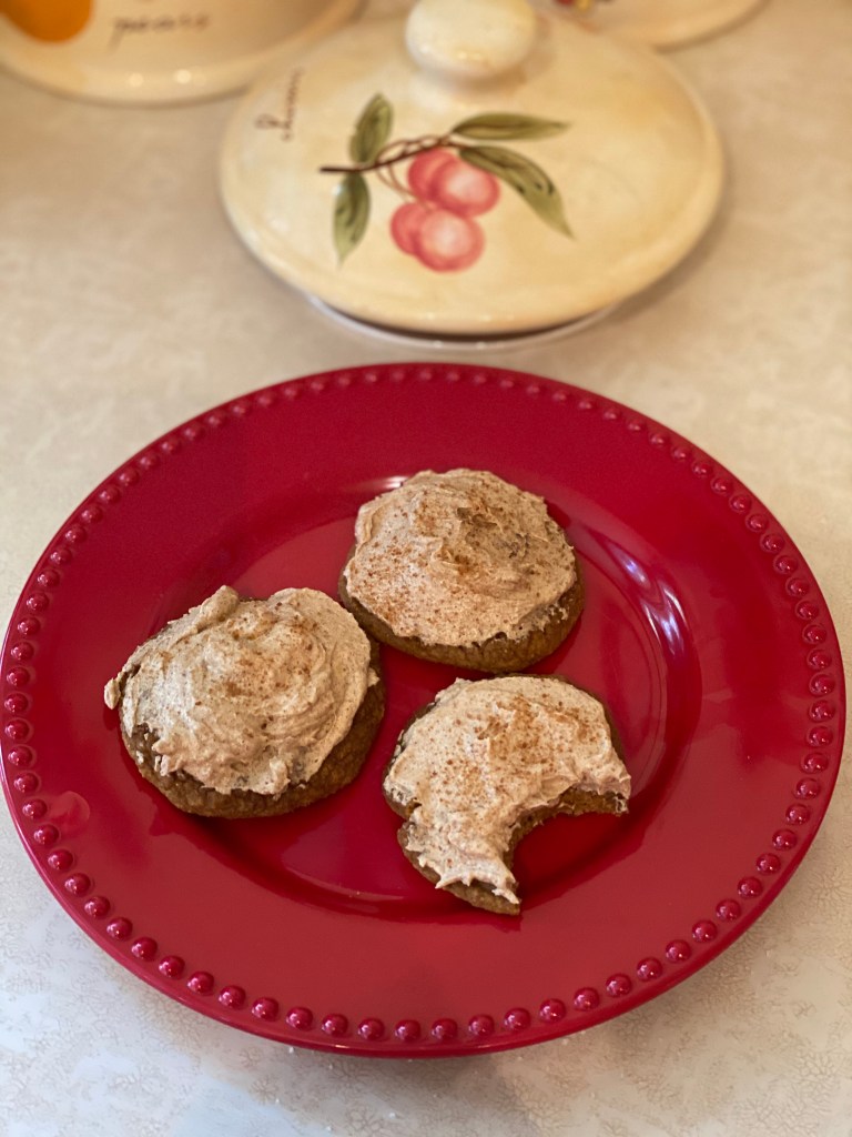3. With frosting blade (or even a regular butter knife), spread frosting generously on each cookie in a swirling motion. Sprinkle a little maple or coconut sugar on top!!!