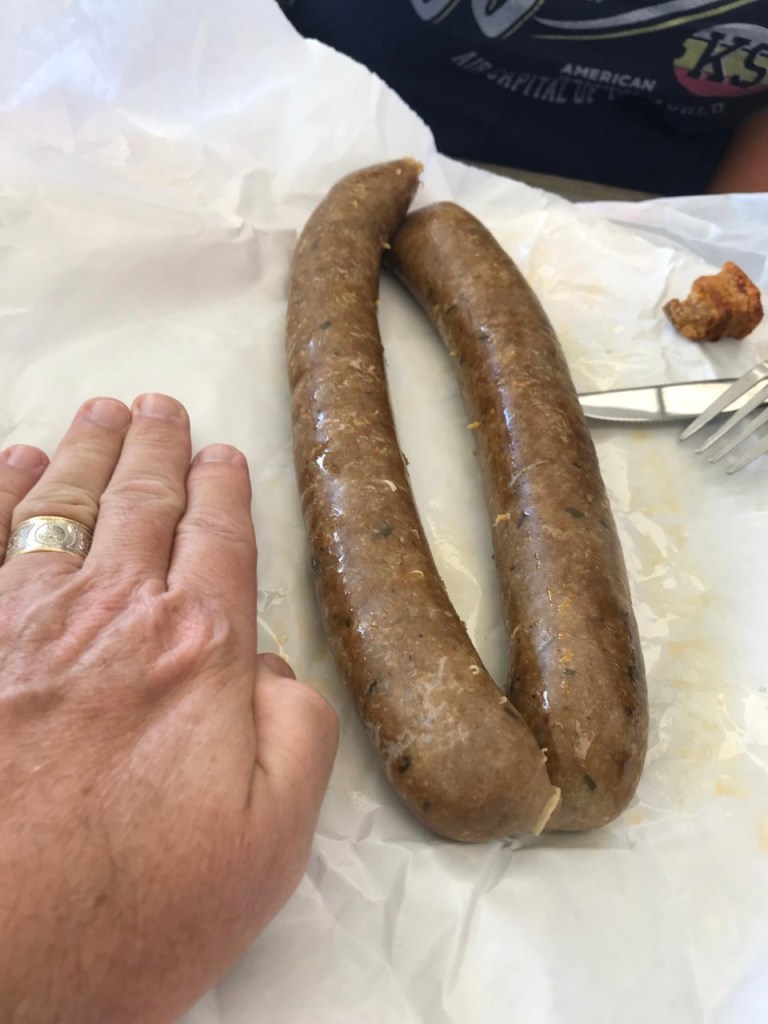 Me- Well then We will take a couple links of boudin, one of those gigantic boudin balls and some cracklings!!