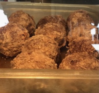 Oh my gosh! Let me tell you! The boudin was delish! The perfect blend of meat and spices; not too hot but definitely not bland either. But just in case you have never heard of boudin or even had the first bite let me explain this most wonderful Cajun/Creole staple!! Boudin is a mixture of rice, ground pork, and spices stuffed into a sausage casing and baked to perfection! Boudin Balls on the other hand is the same mixture but sometimes altered for different flavors, then rolled into a ball in a flour mixture and deep fried. Our boudin ball was delish!