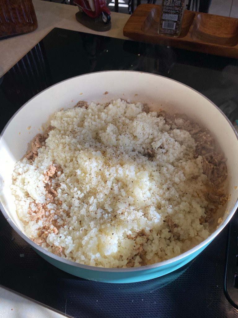 1 16oz bag of frozen cauliflower rice (defrosted)